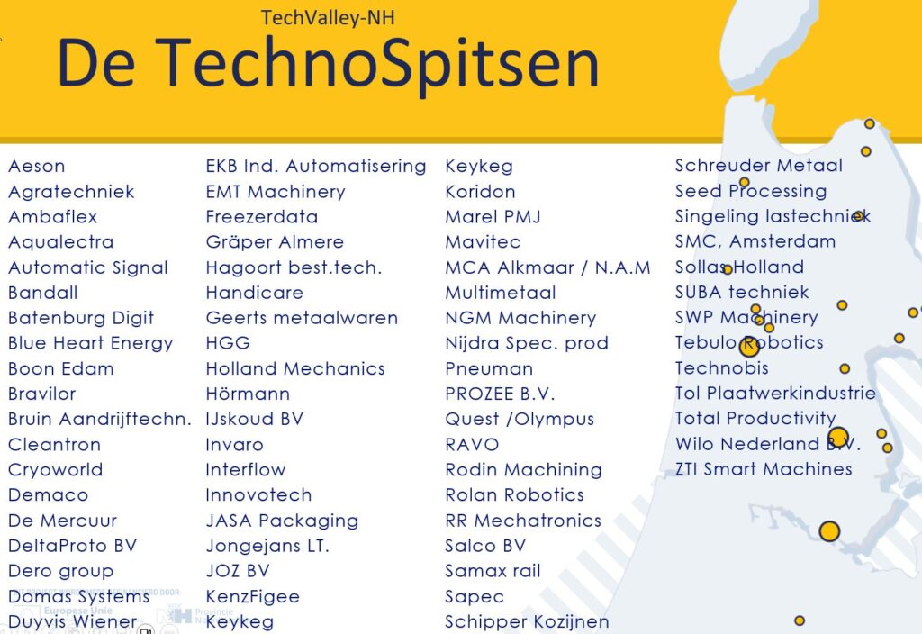 TechnoSpitsen is een netwerk van Noord-Hollandse koploperbedrijven in de maakindustrie.